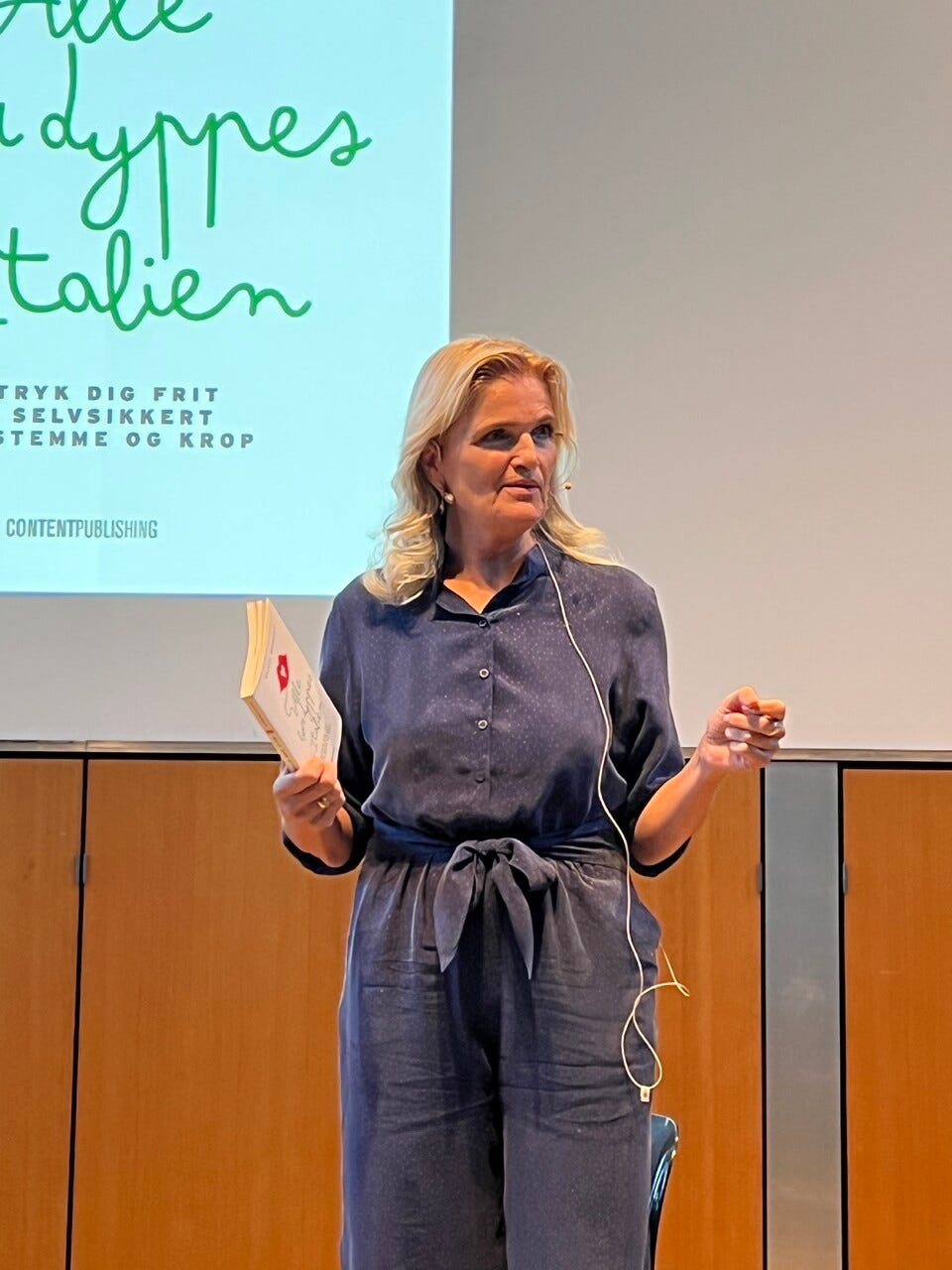 “Når stemmen får lov at fylde mere, sker der noget fysisk i kroppen. Du mærker ro, grounding og kontakt til dig selv, og kroppen bliver et instrument i balance. Du føler det, du siger, mens du siger det, og du står stærkere i dig selv. I Italien oplevede jeg, hvordan denne forbindelse mellem stemme og krop er helt naturlig. Der taler man med hele sig selv – med hænderne, med ansigtet, med energien. Det er den spontanitet og livskraft, jeg ønsker, at flere danske kvinder vil tage til sig. At give sig selv lov til at fylde, larme, grine højt og bruge kroppen, mens de taler. Og at skabe plads til pauser og små siestaer i hverdagen, hvor man slipper kontrollen og lader kreativiteten finde vej. For det er dér, magien opstår – når stemmen og kroppen bevæger sig som ét”.
